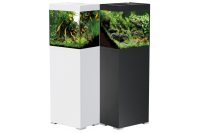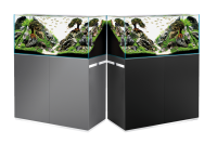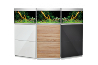 Následne sme prešli na vyšší rad akvárií, ako sú HighLine akváriá. Aj tieto akváriá sa dočkali inovácie v podobe zmeny skla. Donedávna boli používané štandardné sklá, ale do nového roka sa rozhodli vstúpiť so zmenenými sklami v podobe Optiwhite. Tieto sklá sú čírejšie ako štandardné, práve preto sa nám naskytuje krajší pohľad do akvária s úplne inými farbami. Hrúbka skiel je od 8 mm až po 12 mm, čo nám postačuje pre dokonalú pevnosť pri veľkostiach od 125 litrov až po novinku 600 litrov vody. Môžeme sa tešiť aj štyrom farebným prevedeniam, ako napríklad farba antracitová, dubová, biela a čierna. Tieto akvária sa predávajú samostatne, čiže samotné akvárium a skrinka, ktoré sú bezchybne vyhotovené s ohľadom aj na tie najmenšie detaily. Akvárium nám poskytuje veľa nových možností, ako zamaskovať všetku techniku. V akváriu sa nachádza prepad pre nasávanie a za pomoci prevŕtaného dna a použitím komponentu na utesnenie dokáže vracať prefiltrovanú vodu späť do akvária. Kryt akvária je vyhotovený z hliníka bez rušivého dojmu rukoväti. K otvoreniu krytu akvária nám stačí pritlačiť kryt a za pomoci piestov sa nám otvorí. Pri navrhovaní skrinky sa myslelo na detaily, od jej povrchovej úpravy, ktorá zabezpečuje jej vodovzdornosť, až po samotné umiestnenie filtra.