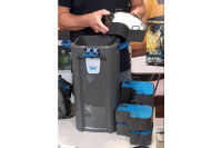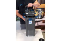 Posledný bod programu bolo kompletné odprezentovanie filtra BioMaster Thermo 850. Tu sme si prešli systém prúdenia vody vo filtri. Prešli sme si detaily predfiltra, filtračné médiá. Celý filter sme rozobrali a priblížili detaily, ako aj jeho výhody. Veľkou výhodou tohto filtra je práve jeho predfilter a jeho pomerne veľká kapacita a jednoduché vyberanie z filtra. Ak chceme predfilter vybrať z filtra, je potrebné predné páčky odblokovať na oboch stranách, vďaka ktorým sa zastaví prívod vody do filtra a voda nevytečie na podlahu. Pri demontovaní hlavy filtra, kde sa nachádza samotné čerpadlo, nám v otvorení bráni vrchné madlo, ktoré blokujú bočné spony. Tie fungujú ako poistka pri neopatrnej manipulácii a náhodnému otvoreniu filtra. Filter je kvalitne prepracovaný, dbalo sa na detail a jednoduchosť použitia pre samotného spotrebiteľa.
