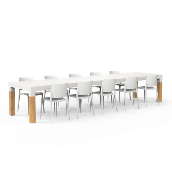 Chladný, čistý a minimalistický dizajn, v ktorom doska stola plynule nadväzuje na rám stola. Rámy sú k dispozícii v dubovom aj hliníkovom prevedení.